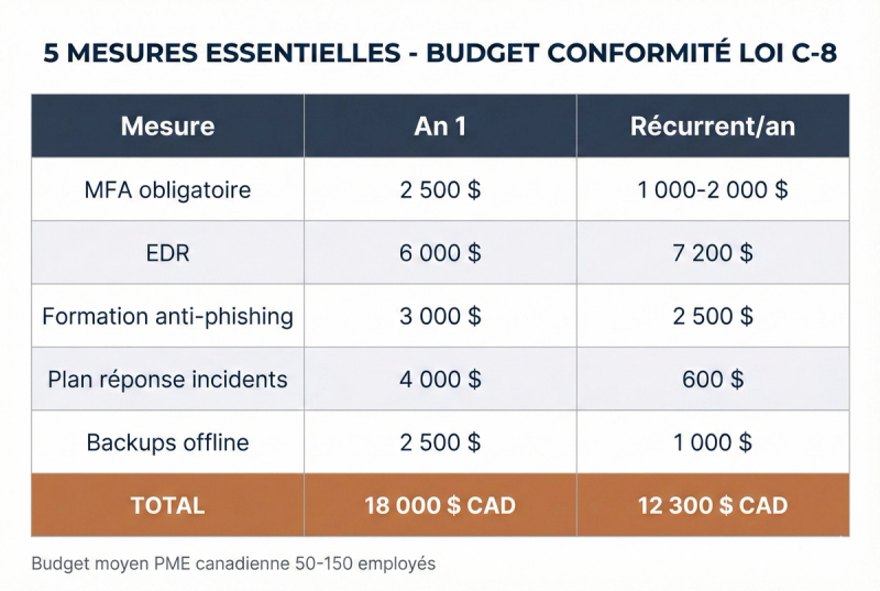 Voici 5 mesures prioritaires avec budgets réalistes pour une PME québécoise de 50-150 employés.