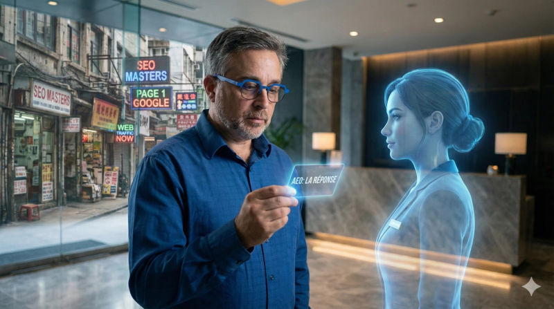 Pensez-y comme la différence entre avoir une vitrine sur la rue principale (SEO) et être recommandé par le concierge de l'hôtel (AEO). Les deux importent. Mais de plus en plus de gens demandent au concierge plutôt que de marcher sur la rue principale.